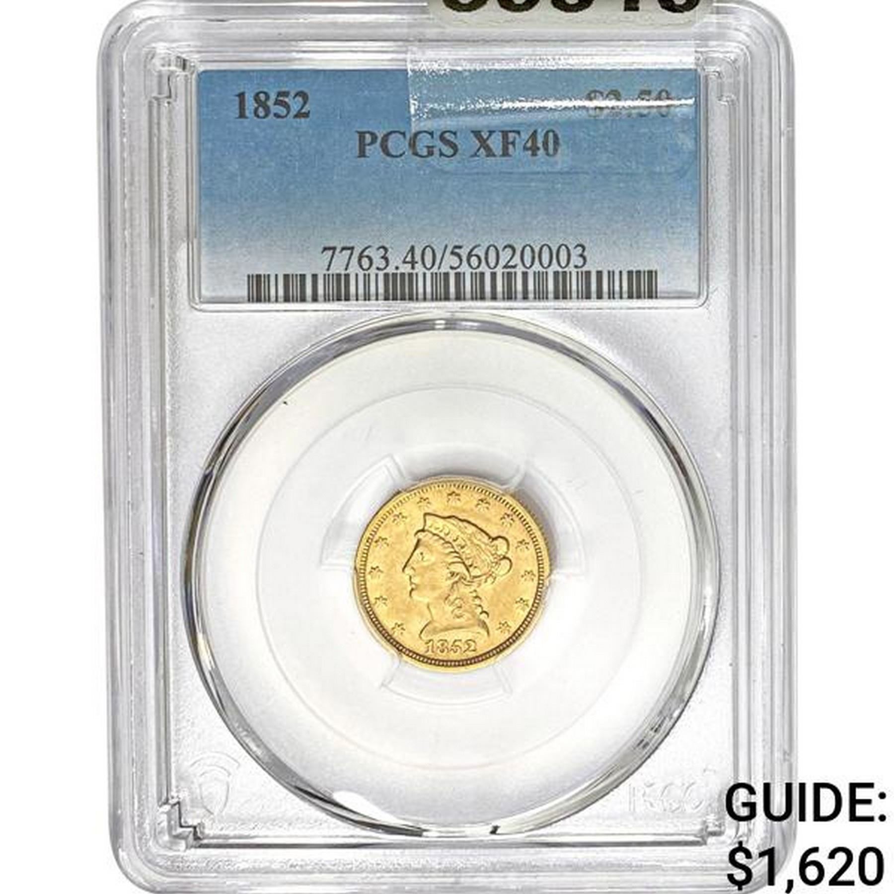 1852 2 1/2 Dollar Gold PCGS XF40
