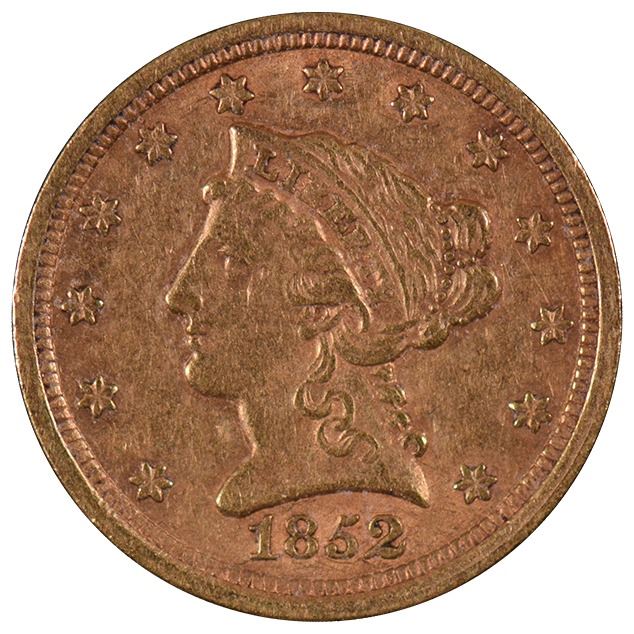 One 1852 $2 1/2 Liberty Head Quarter Eagle Gold Coin.