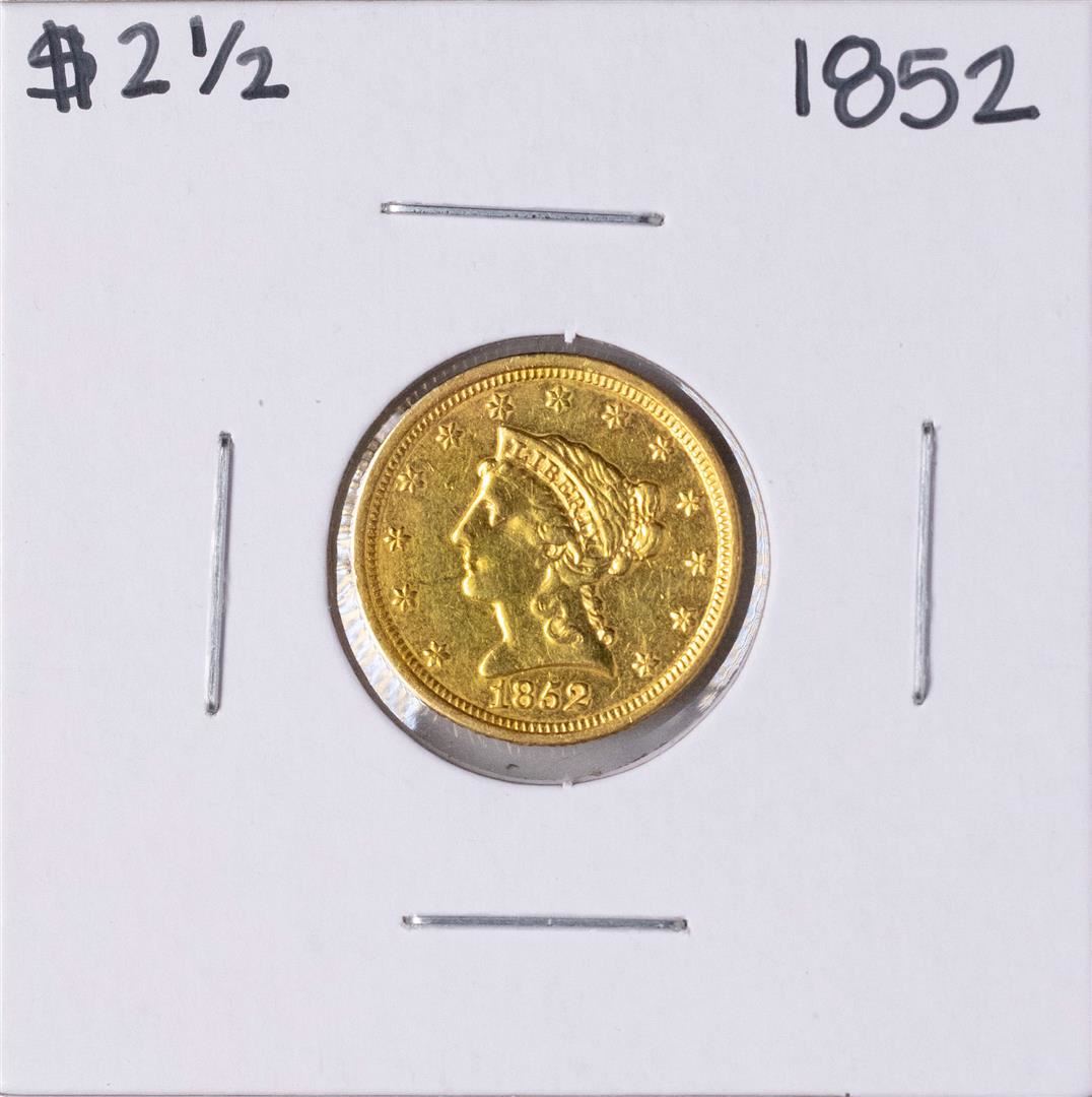 One 1852 $2 1/2 Liberty Head Quarter Eagle Gold Coin.