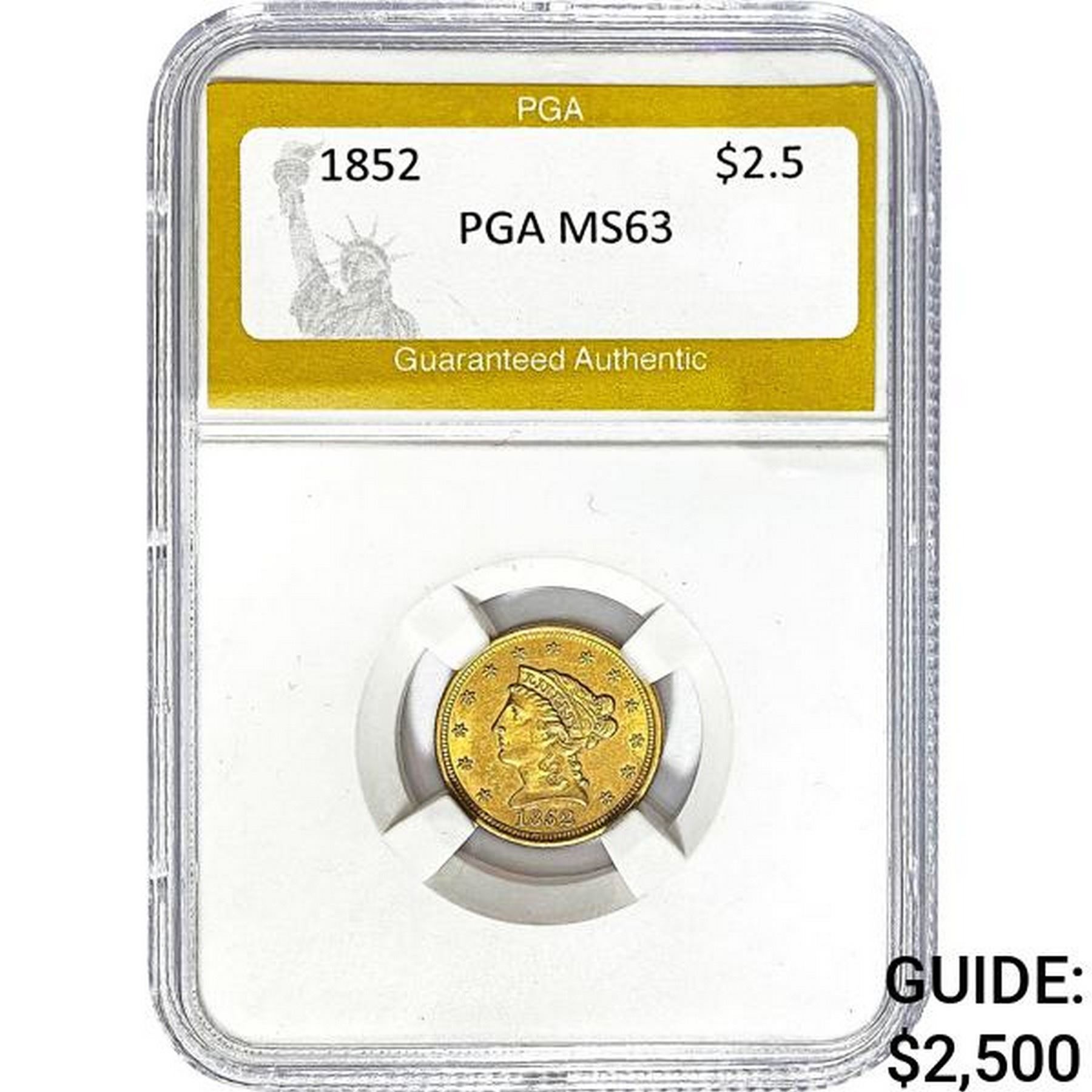 1852 $2.5 Gold Liberty Head PGA MS63