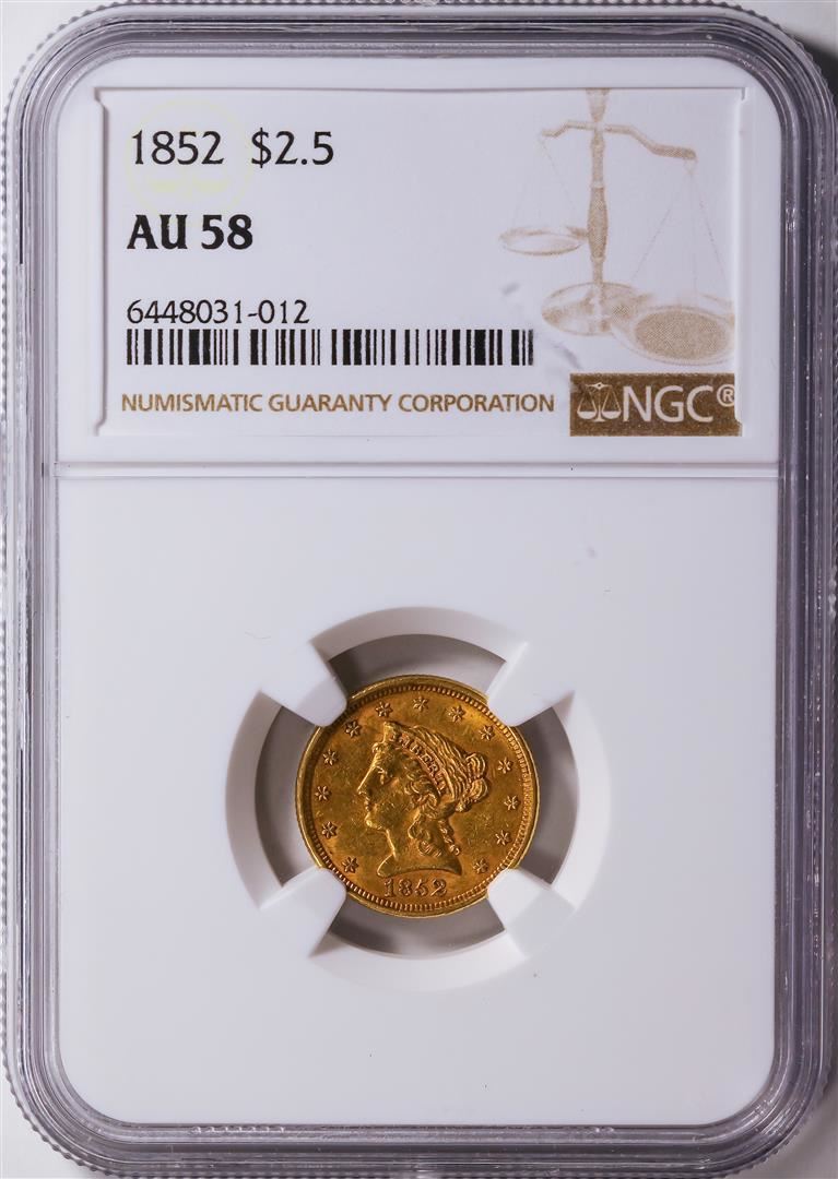 One 1852 $2.5 Liberty Head Quarter Eagle Gold Coin NGC AU58.
