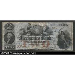 1852 $2 Mechanics Bank, Georgetown, DC, XF...