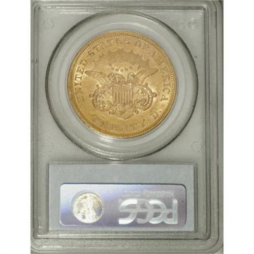 <B>1852 $20 AU50 PCGS.</B></I> Traces of luster reside in the recessed areas of this generally well struck twenty. Peach-gold surfaces reveal the expected number of marks for a large, heavy gold coin that saw limited circulation. A fairly high-mintage Philadelphia issue (2,053,026 pieces).<BR><BR><b>Shipping:</b> Coins & Currency (<a target="_blank" href="http://www.heritageauctions.com/common/shipping.php">view shipping information</a>)
