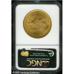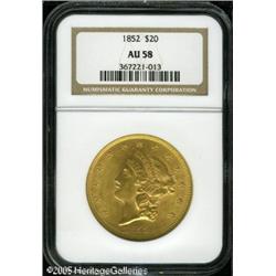 <B>1852 $20 AU58 NGC.</B></I> A bold example that has green-gold color and a few inconsequential field abrasions. The reverse has especially extensive luster.<BR><I>From The Richard J. Chouinard Collection of United States Coins, Part Two.</B></I> Lot:8933