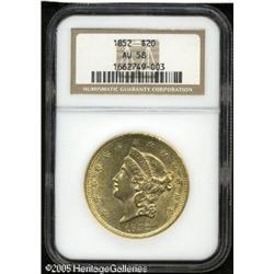 1852 $20 AU58 NGC. An attractive, lustrous and app