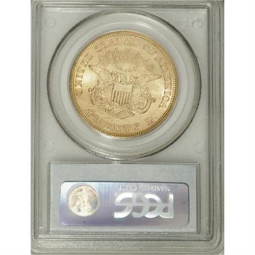 <B>1852 $20 AU58 PCGS.</B></I> Yellow-gold surfaces display ample luster and sharply struck design features. A few small marks and luster grazes are noted, especially on the obverse. A couple of die polish areas are visible on the reverse.<BR><BR><B>Coin Engraver:</B> James B. Longacre<BR><BR><b>Shipping:</b> Coins & Currency (<a target="_blank" href="http://www.heritageauctions.com/common/shipping.php">view shipping information</a>\)