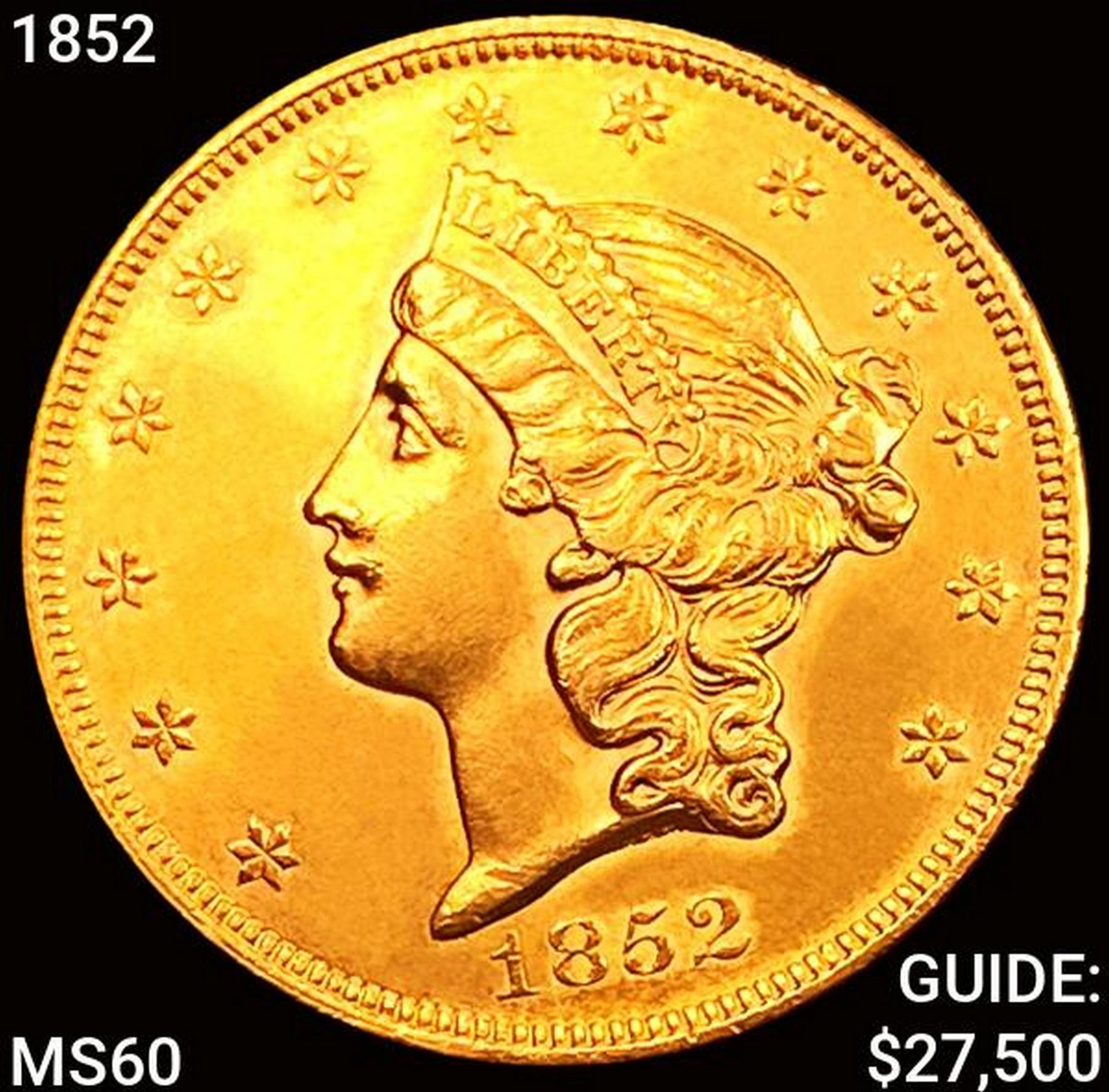 1852 $20 Gold Double Eagle UNCIRCULATED