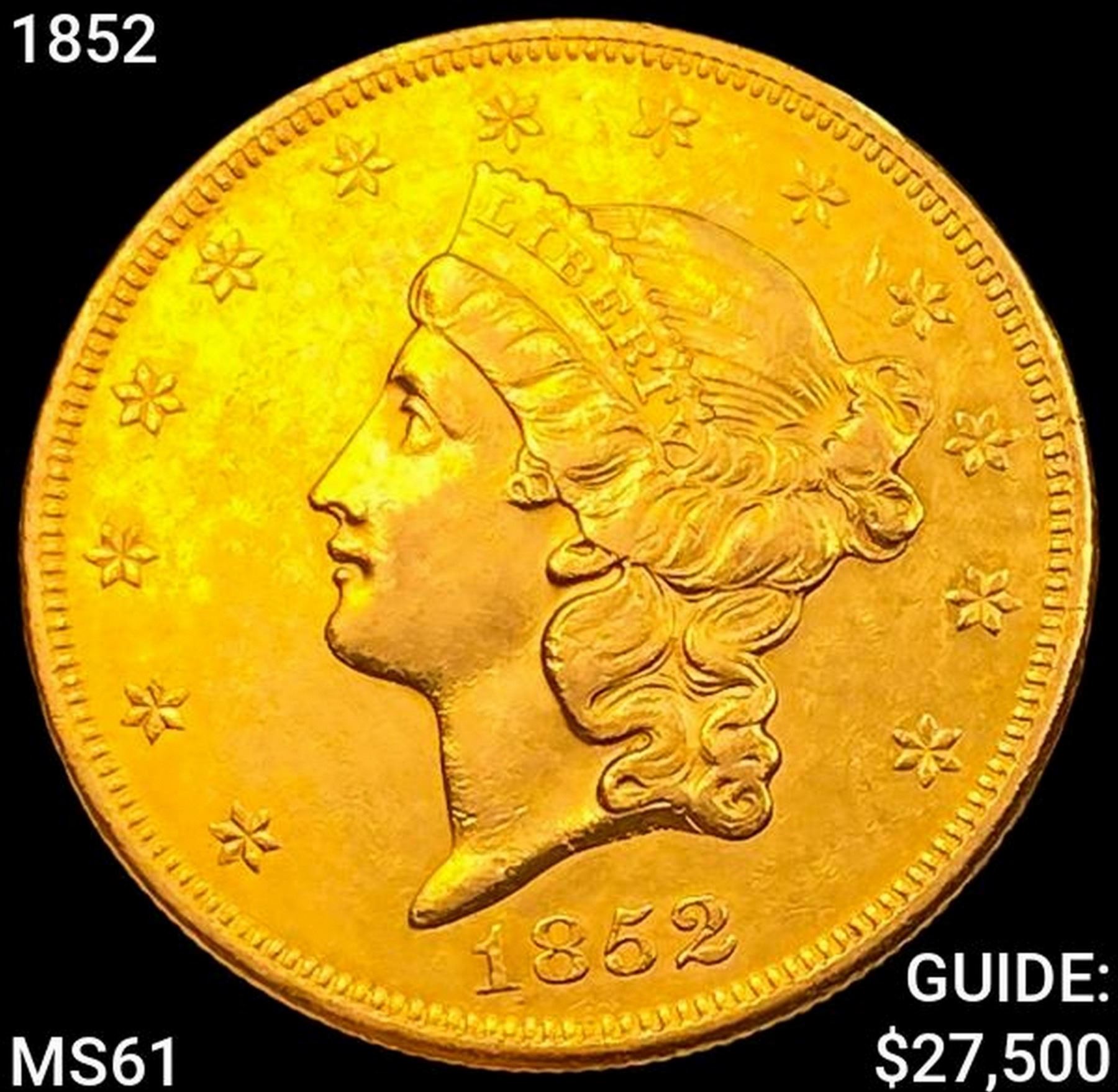1852 $20 Gold Double Eagle UNCIRCULATED