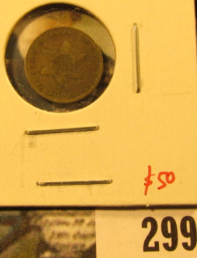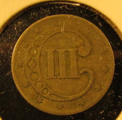 1852 3 Cent silver, F, value $50