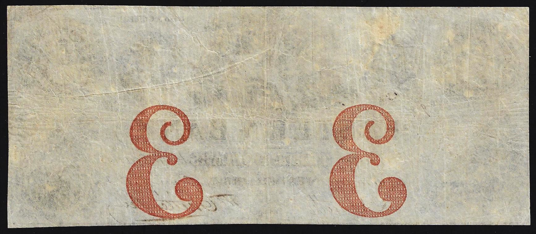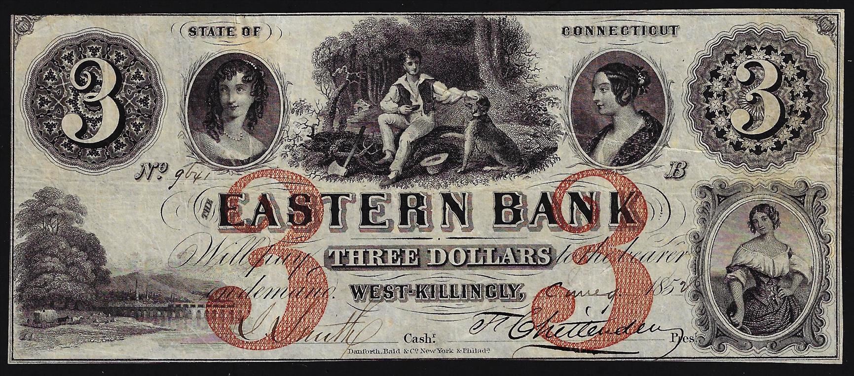 1852 $3 The Eastern Bank West Killingly Connecticut Obsolete Bank Note