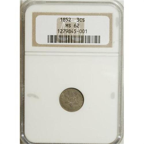 1852 3CS MS62 NGC. NGC Census: (111/904). PCGS Pop