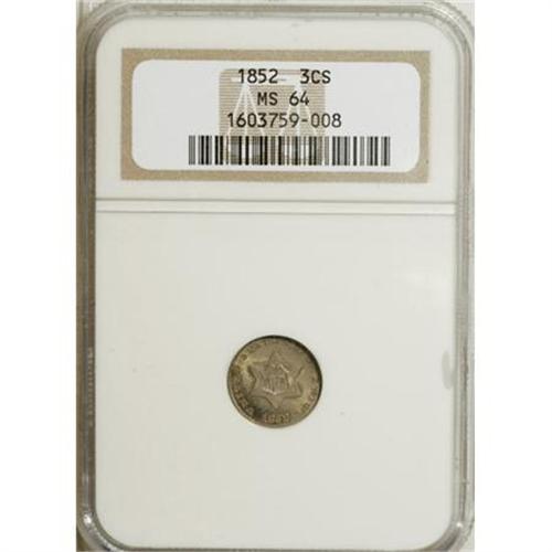 1852 3CS MS64 NGC. NGC Census: (418/253). PCGS Pop