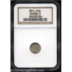 <table><tr><td><TABLE cellSpacing=0 cellPadding=0 width="100%" bgColor=#000000 border=0><TBODY> <TR><TD width="100%"><TABLE cellSpacing=1 cellPadding=3 width="100%" border=0><TBODY><TR><TD width="100%" bgColor=#79735c><FONT face=arial color=#ffffff size=3><B>Description</B> </FONT></TD></TR><TR><TD width="100%" bgColor=#ffffff><FONT face=arial size=2><B>1852 3CS MS65 NGC.</B></I> Typically struck and satiny with well preserved multicolored surfaces. Population: 149 in 65, 78 finer (7/03). </FONT></TD></TR></TBODY></TABLE></TD></TR></TBODY></TABLE><BR><A name=PricesRealized></A><TABLE cellSpacing=0 cellPadding=0 width="100%" bgColor=#000000 border=0><TBODY><TR><TD width="100%"><TABLE cellSpacing=1 cellPadding=3 width="100%" border=0><TBODY><TR><TD width="100%" bgColor=#79735c><A name=PR><FONT face=arial color=#ffffff size=3><B>Previous Prices from Heritage Auctions</B> </FONT></A></TD></TR><TR><TD bgColor=#f6f6ed><TABLE cellSpacing=0 cellPadding=0 width="100%" border=1><TBODY><TR><TD align=middle width="33%"><B>Date</B></TD><TD align=middle width="33%"><B>Service</B></TD><TD align=middle width="33%"><B>Price</B></TD></TR><TR bgColor=whitesmoke><TD width="33%"><B>09/23/2003</B></TD><TD width="33%">PCGS</TD><TD width="33%">$690.00</TD></TR><TR bgColor=whitesmoke><TD width="33%"><B>07/08/2003</B></TD><TD width="33%">NGC</TD><TD width="33%">$603.75</TD></TR><TR bgColor=whitesmoke><TD width="33%"><B>11/19/2002</B></TD><TD width="33%">PCGS</TD><TD width="33%">$603.75</TD></TR><TR bgColor=whitesmoke><TD width="33%"><B>11/12/2002</B></TD><TD width="33%">PCGS</TD><TD width="33%">$603.75</TD></TR><TR bgColor=whitesmoke><TD width="33%"><B>04/09/2002</B></TD><TD width="33%">NGC</TD><TD width="33%">$506.00</TD></TR><TR bgColor=whitesmoke><TD width="33%"><B>09/11/2001</B></TD><TD width="33%">PCGS</TD><TD width="33%">$700.00</TD></TR><TR bgColor=whitesmoke><TD width="33%"><B>06/05/2001</B></TD><TD width="33%">NGC</TD><TD width="33%">$600.00</TD></TR><TR bgColor=whitesmoke><TD width="33%"><B>02/13/2001</B></TD><TD width="33%">NGC</TD><TD width="33%">$575.00</TD></TR><TR bgColor=whitesmoke><TD width="33%"><B>01/30/2001</B></TD><TD width="33%">PCGS</TD><TD width="33%">$726.00</TD></TR><TR bgColor=whitesmoke><TD width="33%"><B>09/26/2000</B></TD><TD width="33%">NGC</TD><TD width="33%">$700.00</TD></TR><TR bgColor=whitesmoke><TD width="33%"><B>01/11/2000</B></TD><TD width="33%">NGC</TD><TD width="33%">$675.00</TD></TR><TR bgColor=whitesmoke><TD width="33%"><B>12/14/1999</B></TD><TD width="33%">NGC</TD><TD width="33%">$575.00</TD></TR><TR bgColor=whitesmoke><TD width="33%"><B>09/22/1999</B></TD><TD width="33%">NGC</TD><TD width="33%">$625.00</TD></TR><TR bgColor=whitesmoke><TD width="33%"><B>07/29/2003</B></TD><TD width="33%">NGC</TD><TD width="33%">$805.00</TD></TR><TR bgColor=whitesmoke><TD width="33%"><B>01/11/2003</B></TD><TD width="33%">NGC</TD><TD width="33%">$632.50</TD></TR><TR bgColor=whitesmoke><TD width="33%"><B>01/11/2003</B></TD><TD width="33%">PCGS</TD><TD width="33%">$787.75</TD></TR><TR bgColor=whitesmoke><TD width="33%"><B>09/28/2002</B></TD><TD width="33%">PCGS</TD><TD width="33%">$747.50</TD></TR><TR bgColor=whitesmoke><TD width="33%"><B>01/12/2002</B></TD><TD width="33%">NGC</TD><TD width="33%">$506.00</TD></TR><TR bgColor=whitesmoke><TD width="33%"><B>11/15/2001</B></TD><TD width="33%">PCGS</TD><TD width="33%">$632.50</TD></TR><TR bgColor=whitesmoke><TD width="33%"><B>08/08/2001</B></TD><TD width="33%">NGC</TD><TD width="33%">$546.25</TD></TR><TR bgColor=whitesmoke><TD width="33%"><B>05/31/2001</B></TD><TD width="33%">PCGS</TD><TD width="33%">$661.25</TD></TR><TR bgColor=whitesmoke><TD width="33%"><B>02/23/2001</B></TD><TD width="33%">NGC</TD><TD width="33%">$488.75</TD></TR><TR bgColor=whitesmoke><TD width="33%"><B>08/07/2000</B></TD><TD width="33%">ANACS</TD><TD width="33%">$575.00</TD></TR><TR bgColor=whitesmoke><TD width="33%"><B>06/10/2000</B></TD><TD width="33%">NGC</TD><TD width="33%">$603.75</TD></TR><TR bgColor=whitesmoke><TD width="33%"><B>02/11/2000</B></TD><TD width="33%">PCGS</TD><TD width="33%">$718.75</TD></TR><TR bgColor=whitesmoke><TD width="33%"><B>02/12/2000</B></TD><TD width="33%">NGC</TD><TD width="33%">$632.50</TD></TR><TR bgColor=whitesmoke><TD width="33%"><B>10/10/1999</B></TD><TD width="33%">NGC</TD><TD width="33%">$509.45</TD></TR><TR bgColor=whitesmoke><TD width="33%"><B>08/13/1999</B></TD><TD width="33%">PCGS</TD><TD width="33%">$701.50</TD></TR><TR bgColor=whitesmoke><TD width="33%"><B>08/07/1998</B></TD><TD width="33%">NGC</TD><TD width="33%">$488.75</TD></TR><TR bgColor=whitesmoke><TD width="33%"><B>06/06/1998</B></TD><TD width="33%">PCGS</TD><TD width="33%">$718.75</TD></TR><TR bgColor=whitesmoke><TD width="33%"><B>08/02/1997</B></TD><TD width="33%">PCGS</TD><TD width="33%">$747.50</TD></TR><TR bgColor=whitesmoke><TD width="33%"><B>10/04/1997</B></TD><TD width="33%">PCGS</TD><TD width="33%">$687.50</TD></TR><TR bgColor=whitesmoke><TD width="33%"><B>02/22/1997</B></TD><TD width="33%">PCGS</TD><TD width="33%">$880.00</TD></TR><TR bgColor=whitesmoke><TD width="33%"><B>11/17/1995</B></TD><TD width="33%">NGC</TD><TD width="33%">$577.50</TD></TR><TR bgColor=whitesmoke><TD width="33%"><B>02/03/1995</B></TD><TD width="33%">NGC</TD><TD width="33%">$577.50</TD></TR><TR bgColor=whitesmoke><TD width="33%"><B>01/04/1995</B></TD><TD width="33%">PCGS</TD><TD width="33%">$924.00</TD></TR><TR bgColor=whitesmoke><TD width="33%"><B>01/01/1995</B></TD><TD width="33%">NGC</TD><TD width="33%">$743.00</TD></TR><TR bgColor=whitesmoke><TD width="33%"><B>05/01/1999</B></TD><TD width="33%">NGC</TD><TD width="33%">$935.00</TD></TR><TR bgColor=whitesmoke><TD width="33%"><B>05/01/1999</B></TD><TD width="33%">NGC</TD><TD width="33%">$660.00</TD></TR><TR bgColor=whitesmoke><TD width="33%"><B>09/01/1998</B></TD><TD width="33%">NGC</TD><TD width="33%">$977.00</TD></TR><TR bgColor=whitesmoke><TD width="33%"><B>03/01/2000</B></TD><TD width="33%">NGC</TD><TD width="33%">$575.00</TD></TR><TR bg