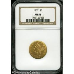 1852 $5 AU58 NGC. A sharply struck, lightly marked 1852 $5 AU58 NGC.