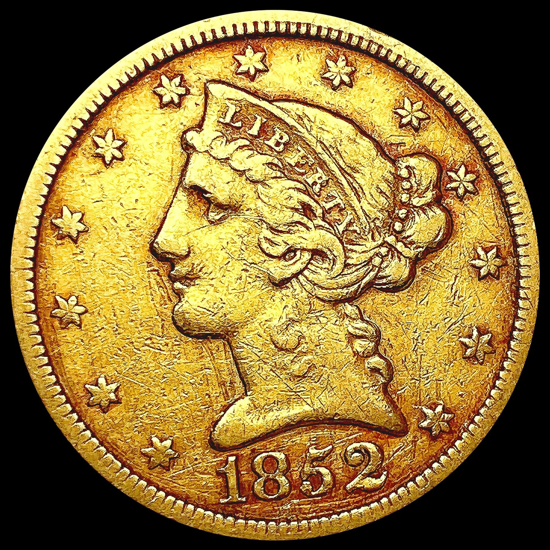 1852 $5 Gold Half Eagle LIGHTLY CIRCULATED