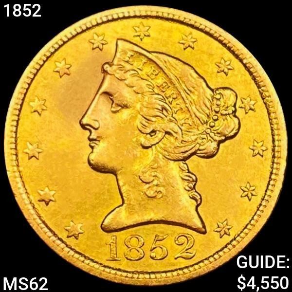1852 $5 Gold Half Eagle UNCIRCULATED