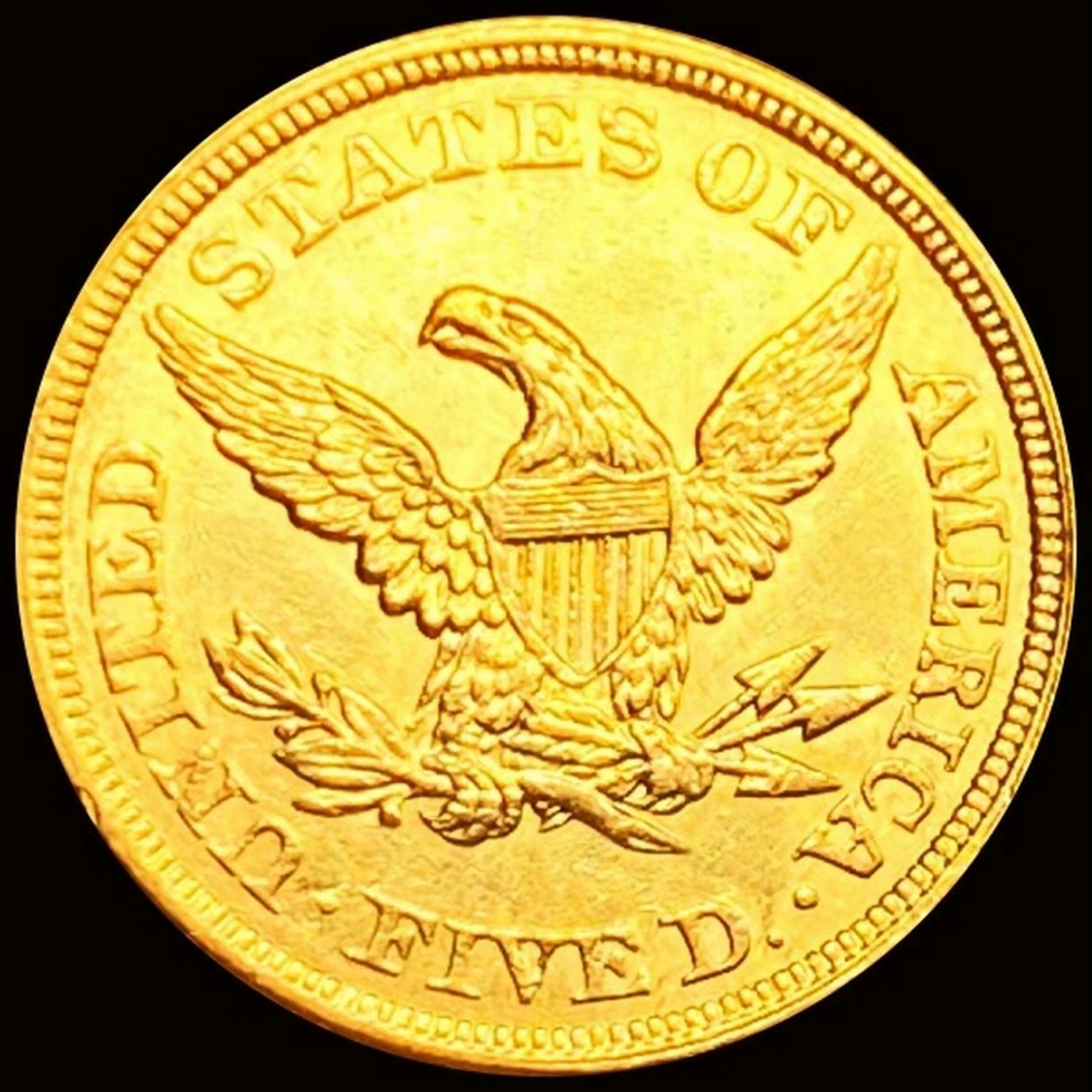 1852 $5 Gold Half Eagle UNCIRCULATED +