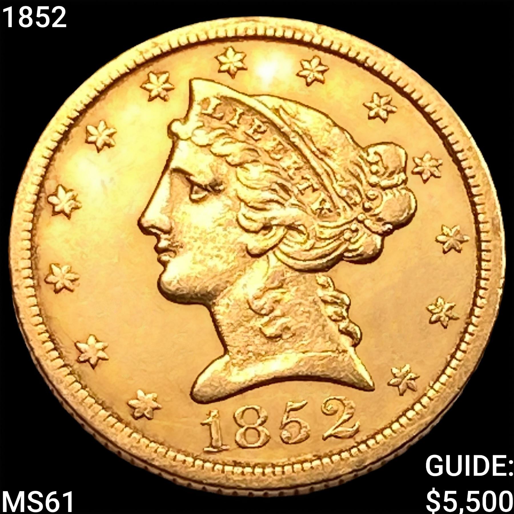 1852 $5 Gold Half Eagle UNCIRCULATED