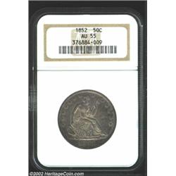 1852 50C AU55 NGC. A well struck lilac-gray representative that has glimmers of luster at the border