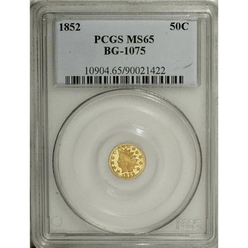 1852 50C Indian Round 50 Cents, BG-1075, R.7, MS65 PCG