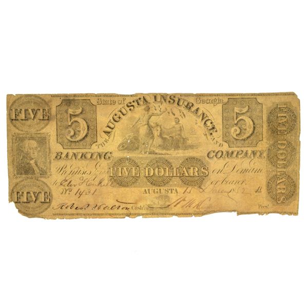 1852 Augusta GA.$5 Note