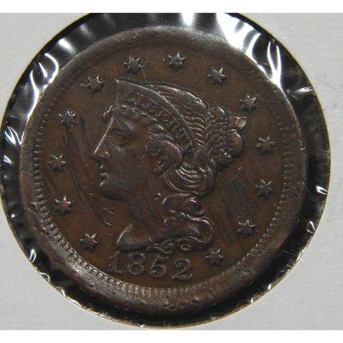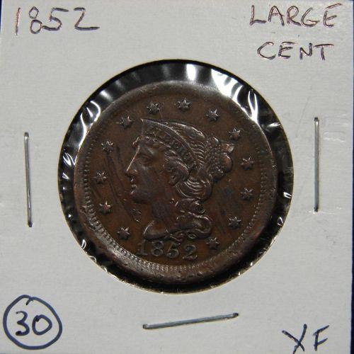 1852 U.S. BRAIDED HAIR LARGE CENT. XF.