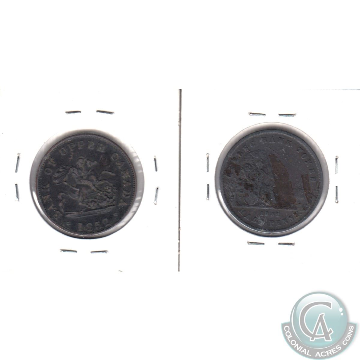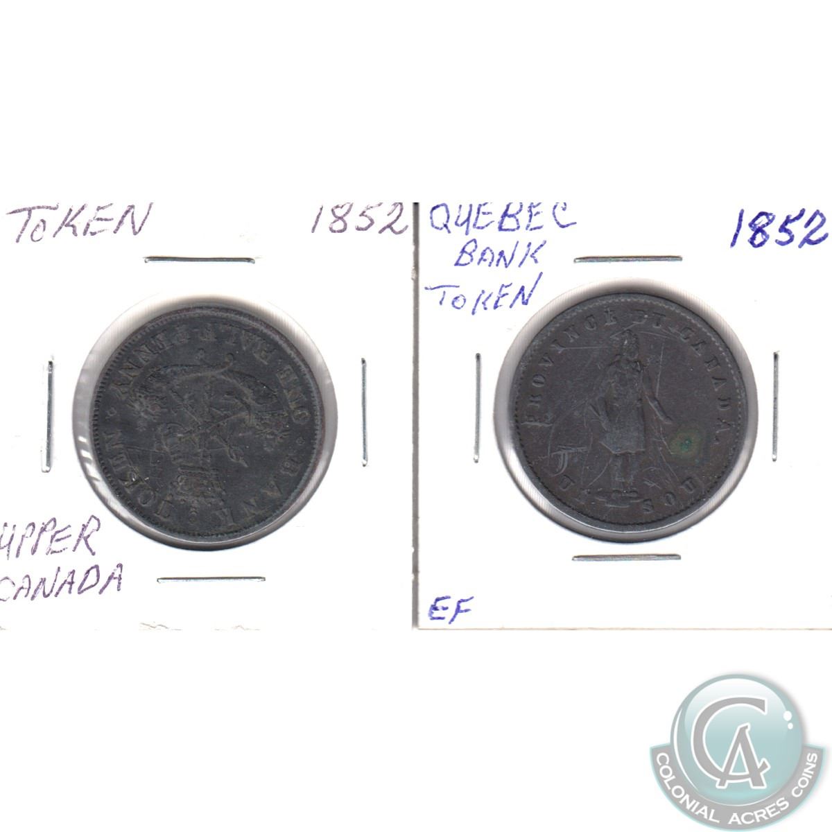 1852 Bank of Upper Canada Half Penny & 1852 Bank of Quebec Half Penny Tokens. 2pcs