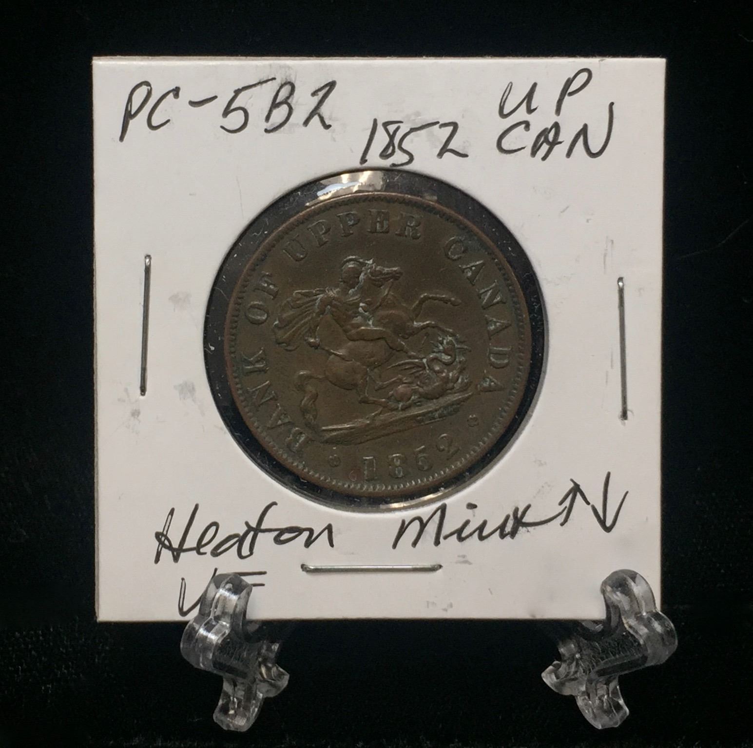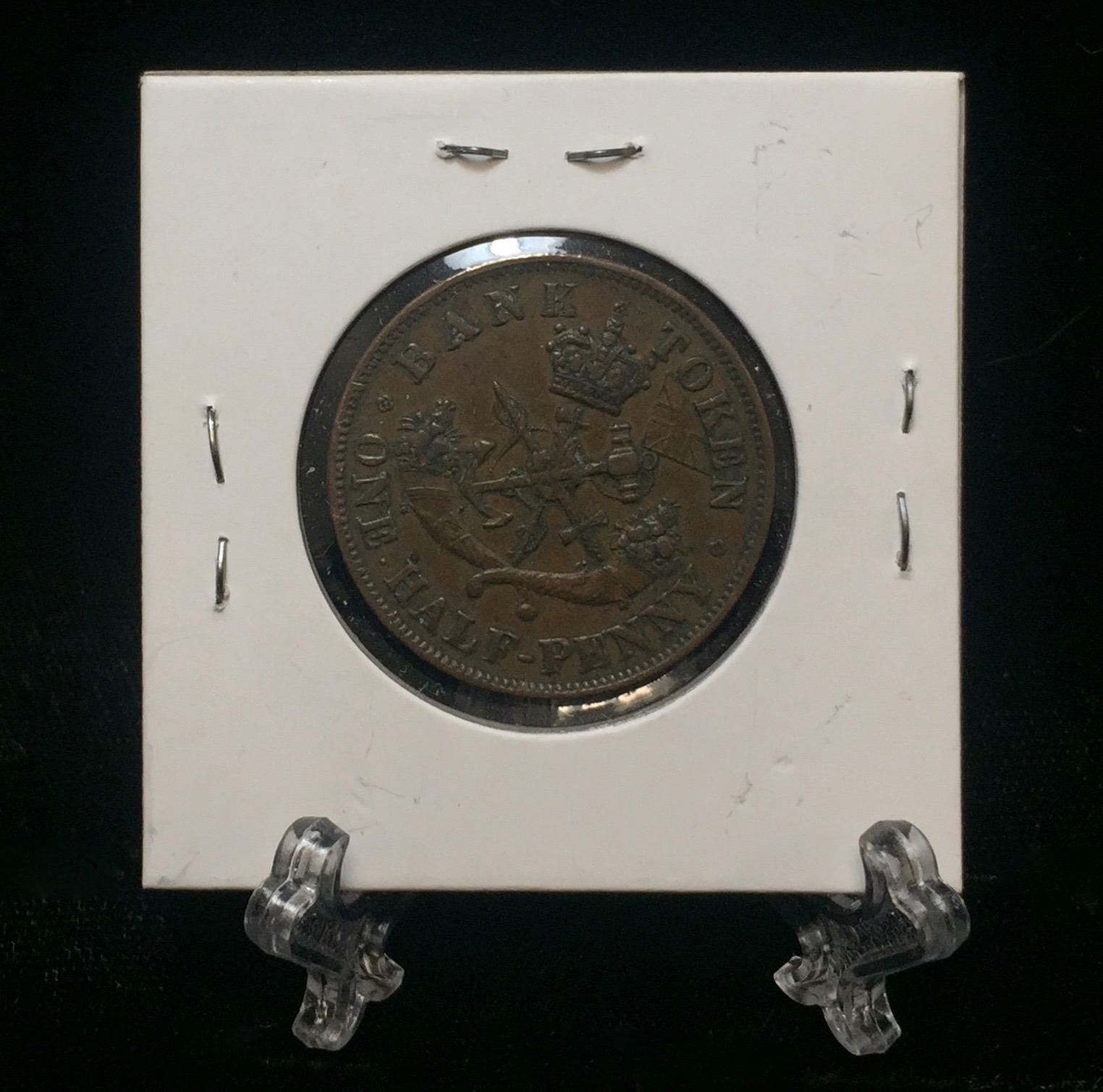 Lot 414; 1852 Bank of Upper Canada Half Penny Token Very Fine, Rotated Die
