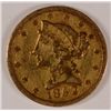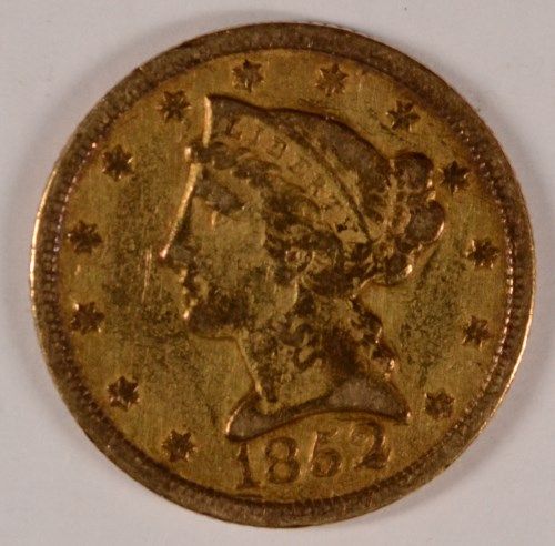 1852-C $5.00 LIBERTY GOLD, RARE CHARLOTTE MINT, XF/AU ORIGINAL, VERY NICE