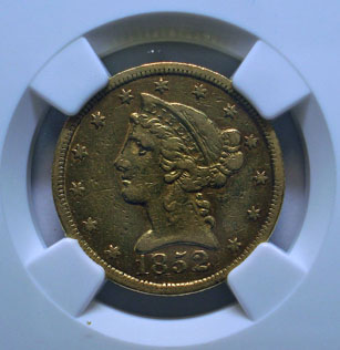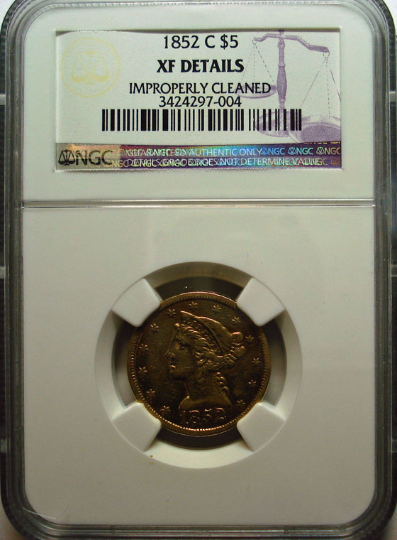 1852-C $5 Gold XF Details Cleaned Rare Charlotte Gold. Coin World VF= $1800, XF=$2100