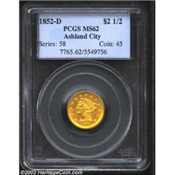 1852-D $2 1/2 MS62 PCGS. Winter 15-L. Last offered at public auction as part of the Chestatee Collec