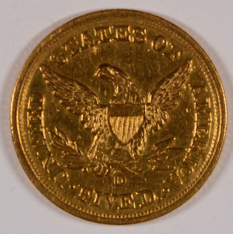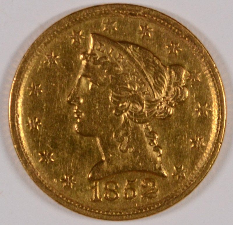 1852-D $5 GOLD LIBERTY, RARE SOUTHERN BRANCH MINT, BU CLEANED