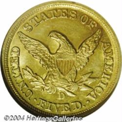 <table><tbody><tr><td><table> <TR><TD width="100%"><TABLE cellSpacing=1 cellPadding=3 width="100%" border=0><TBODY><TR><TD width="100%" bgColor=#79735c><FONT face=arial color=#ffffff size=3><B>Description</B> </FONT></TD></TR><TR><TD width="100%" bgColor=#ffffff><FONT face=arial size=2><B>1852-D $5 MS63 NGC.</B></I> Ex: Ashland City. Variety 28-U (per Doug Winter's second edition and revised attribution system), the scarcest of the three varieties known for this issue. Among Dahlonega Half Eagles, the 1852-D has the second largest mintage with 91,584 pieces struck. As a result, examples are readily available up to and including the AU 50 level. Choice About Uncirculated specimens are, however, quite scarce and the present Mint State representative qualifies as upper-end Condition Census or possibly finest known, with this the sole example graded MS63 at NGC, along with only two others at PCGS, and none finer at either service to date (1/04).. The striking details are a bit softly defined, as usually found on examples of this issue. However, the surfaces have rich orange-gold coloration with a slight accent of lilac over the figure of Liberty. Lightly abraded overall, with an insubstantial pinscratch running horizontally through the left obverse field and Liberty's cheek, and with two small planchet flakes in the field by star 12.<BR><I>Ex: Ashland City Collection (Heritage, 1/03), lot 4780, where it realized $19,550; Chestatee Collection/1999 ANA (Heritage, 8/99), lot 7690, where it realized $10,063.</B></I> </FONT></TD></TR></TBODY></TABLE></TD></TR></TBODY></TABLE><BR><A name=PricesRealized></A><TABLE cellSpacing=0 cellPadding=0 width="100%" bgColor=#000000 border=0><TBODY><TR><TD width="100%"><TABLE cellSpacing=1 cellPadding=3 width="100%" border=0><TBODY><TR><TD width="100%" bgColor=#79735c><A name=PR><FONT face=arial color=#ffffff size=3><B>Previous Prices from Heritage Auctions</B> </FONT></A></TD></TR><TR><TD bgColor=#f6f6ed><TABLE cellSpacing=0 cellPadding=0 width="100%" border=1><TBODY><TR><TD align=middle width="33%"><B>Date</B></TD><TD align=middle width="33%"><B>Service</B></TD><TD align=middle width="33%"><B>Price</B></TD></TR><TR bgColor=whitesmoke><TD width="33%"><B>01/11/2003</B></TD><TD width="33%">NGC</TD><TD width="33%">$19,550.00</TD></TR></TBODY></TABLE></TD></TR><TR><TD bgColor=#ffffff><FONT face=arial size=1 ?>PLEASE NOTE: All prices realized reflect the final hammer price PLUS the buyer's premium in auctions that charge a buyer's premium. Each item has a notation at the top of the listing indicating whether that lot included a buyer's premium. Example: A item that sells with a final hammer price of $100 and a 20% buyer's premium will display with a price realized of $120. All information listed is intended to be as accurate as possible, but errors are possible. Please use this guide carefully and inform us of any inaccuracies. </FONT></TD></TR></TBODY></TABLE></TD></TR></TBODY></TABLE><BR><TABLE cellSpacing=0 cellPadding=0 width="100%" bgColor=#000000 border=0><TBODY><TR><TD width="100%"><TABLE cellSpacing=1 cellPadding=3 width="100%" border=0><TBODY><TR><TD width="100%" bgColor=#79735c colSpan=6><FONT face=arial color=#ffffff size=3><B>Price Guide*</B> </FONT></TD></TR><TR bgColor=#f6f6ed><TD align=middle><B>Grade</B> </TD><TD align=middle><B>Coin World<BR>(Trends)</B> </TD><TD align=middle><B>Numismedia<BR>Retail</B> </TD><TD align=middle><B>Numismedia<BR>Wholesale</B> </TD><TD align=middle><B>Coin<BR>Universe</B> </TD><TD align=middle><B>Heritage<BR>Value Index</B> </TD></TR><TR bgColor=#ffffff><TD align=middle>62</TD><TD align=right>$25,000.00</TD><TD align=right>---</TD><TD align=right>$16,240.00</TD><TD align=right>$22,000.00</TD><TD align=right>$14,566.67</TD></TR><TR style="FONT-WEIGHT: bold" bgColor=#cccfdd><TD align=middle>63</TD><TD align=right>$35,000.00</TD><TD align=right>---</TD><TD align=right>---</TD><TD align=right>---</TD><TD align=right>$23,050.00</TD></TR><TR bgColor=#ffffff><TD align=middle>64</TD><TD align=right>---</TD><TD align=right>---</TD><TD align=right>---</TD><TD align=right>---</TD><TD align=right>$38,700.00</TD></TR><TR bgColor=#ffffff><TD colSpan=6><FONT size=1>*All information listed is intended to be as accurate as possible, but errors are possible. No item may be returned or refused based on this information which is provided as a service to our customers. You should contact each pricing source directly to determine the accuracy of this information. </FONT></TD></TR></TBODY></TABLE></TD></TR></TBODY></TABLE><BR><TABLE cellSpacing=0 cellPadding=0 width="100%" bgColor=#000000 border=0><TBODY><TR><TD width="100%"><TABLE cellSpacing=1 cellPadding=3 width="100%" border=0><TBODY><TR><TD width="100%" bgColor=#79735c><FONT face=arial color=#ffffff size=3><B>Population Guide</B> </FONT></TD></TR><TR bgColor=#ffffff><TD align=middle><!-- Begin Output of Population Grid--><TABLE cellSpacing=0 cellPadding=0 width="100%" border=0><TBODY><TR><TD vAlign=center><TABLE cellSpacing=0 width="100%" border=1 cellsadding="3"><TBODY><TR><TD vAlign=center><TABLE cellSpacing=0 cellPadding=3 width="100%" border=1><TBODY><TR><TD vAlign=center align=middle bgColor=#f0f1e8 colSpan=2 <CENTER><FONT face=Arial size=2><B>PCGS Pop </B></FONT><CENTER></CENTER></TD><TD vAlign=center align=middle bgColor=#f0f1e8 colSpan=2><CENTER><FONT face=Arial size=2><B>NGC Pop</B></CENTER></FONT></TD></TR><TR><TD vAlign=center><FONT face=Arial size=2>(63)</FONT> </TD><TD vAlign=center align=right><FONT face=Arial size=2>2</FONT> </TD><TD vAlign=center><FONT face=Arial size=2>(63)</FONT> </TD><TD vAlign=center align=right><FONT face=Arial size=2>1</FONT> </TD></TR><TR><TD vAlign=center><FONT face=Arial size=2>(>63)</FONT> </TD><TD vAlign=center align=right><FONT face=Arial size=2>0</FONT> </TD><TD vAlign=center><FONT face=Arial size=2>(>63)</FONT> </TD><TD vAlign=center align=right><FONT face=Arial size=2>0</FONT> </TD></TR></TBODY></TABLE></TD></TR></TBODY></TABLE></TD></TR></