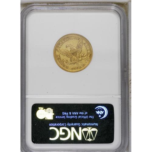 <B>1852-D<$5> XF45 NGC.</B></I> Variety 27-U. This Choice XF piece has vestiges of luster in the protected areas near the devices. Light wear is evenly distributed over the mustard-orange surfaces.
