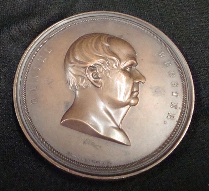 [ca. 1852]. Bronze medal, 2 5/16 inches in diameter. Dark brown patina. Excellent condition. Struck on the obverse: "DANIEL WEBSTER / C.C. WRIGHT D & F." Struck on the reverse: "LIBERTY AND UNION, NOW AND FOREVER. ONE AND INSEPARABLE / I STILL LIVE / MEADE. BROS. DAG F.W. GREENE PUB." A handsome bust portrait in high relief of Daniel Webster, depicting the great American statesman in right profile. No case.