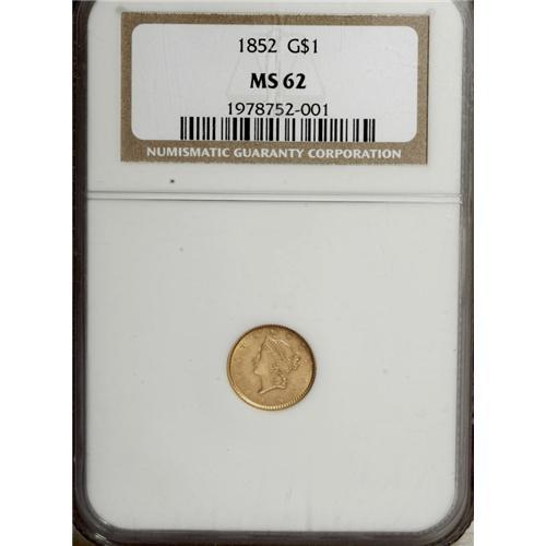 1852 G$1 MS62 NGC. NGC Census: (893/756). PCGS Pop