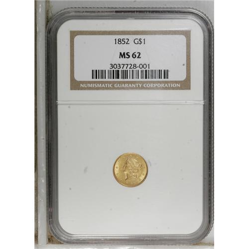 1852 G$1 MS62 NGC. NGC Census: (905/759). PCGS Pop