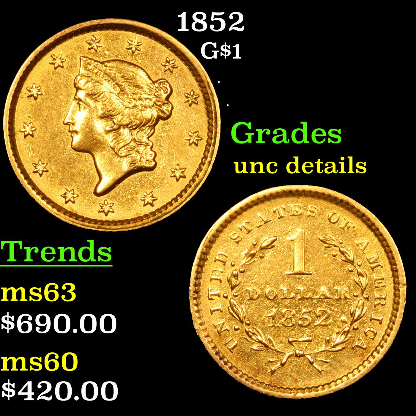 1852 Gold Dollar $1 Grades Unc Details.