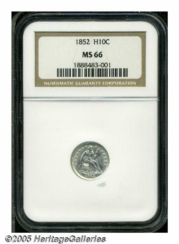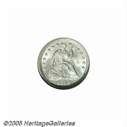 <B>1852<H10C> MS66 NGC.</B></I> Brilliant throughout with dazzling mint luster. The striking details are fully brought up in all areas, and the only marks are two tiny ticks in the field to the right of Liberty's head. One of the more available dates in the With Stars series with a mintage of just over a million pieces. Of course, MS66 examples are rare as seen by the NGC population of only nine pieces certified in this grade with three finer (5/05).