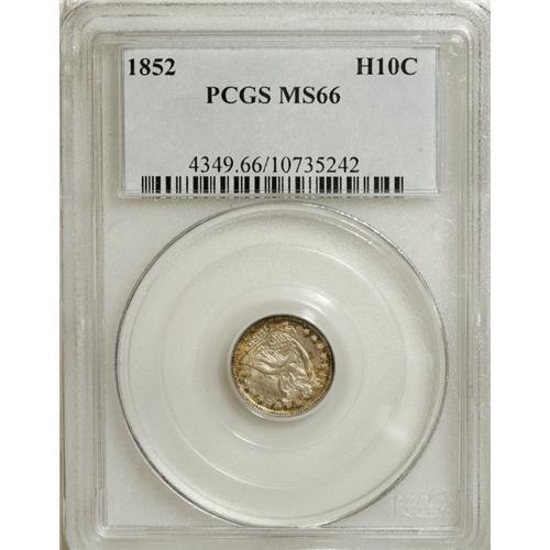 1852 H10C MS66 PCGS. A gorgeous piece, this half dime