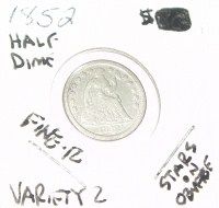 1852 LIBERTY SEATED SILVER 1/2 DIME VARIETY 2 *RARE FINE-12 GRADE* HARD TO FIND COIN!! ***Coin & Currency Grades, Conditions and Values are not Northern Colorado Estate Liquidators Responsibilty. Grades, Condition and Values are determined by Consigner(s) & Buyers ONLY***
