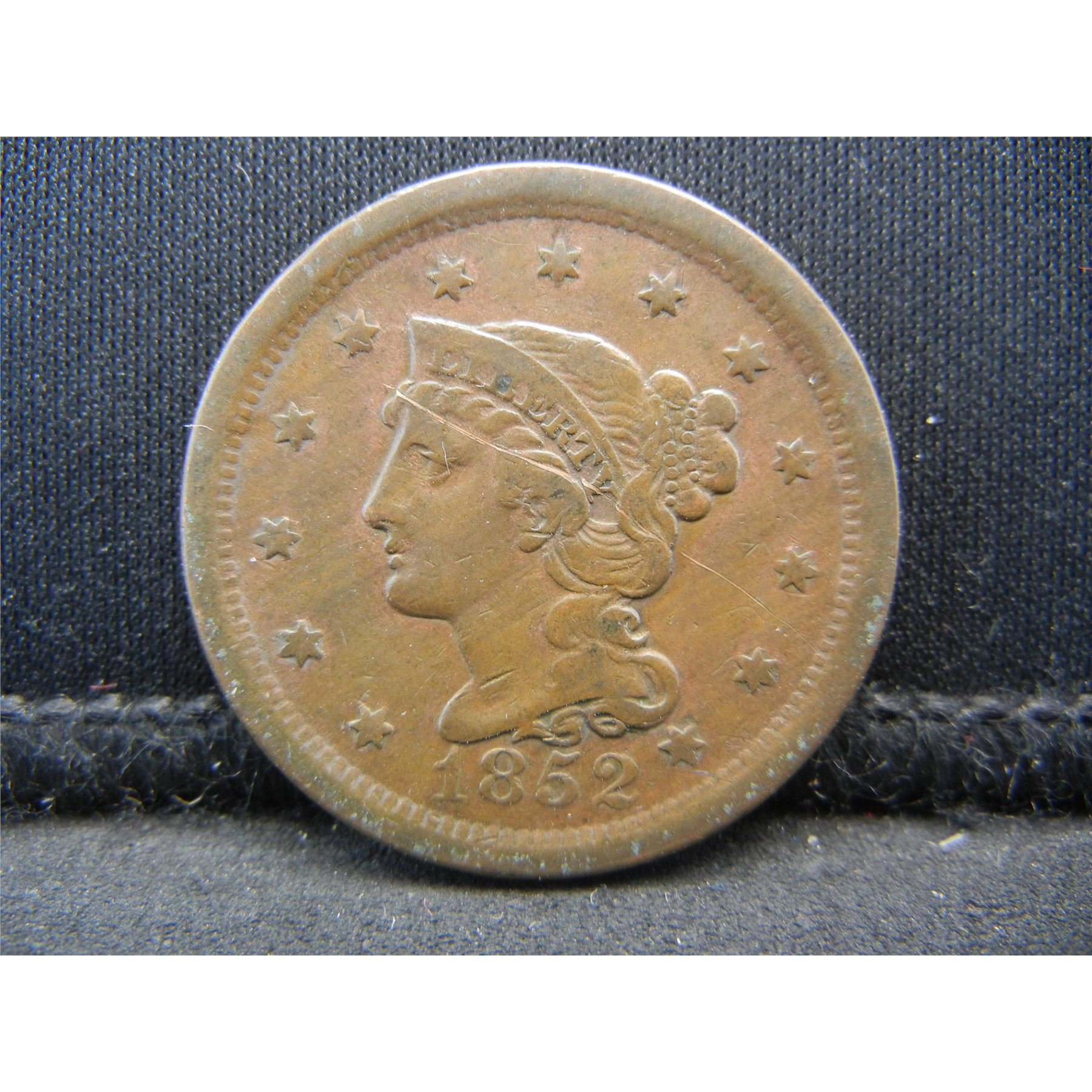 1852 Large Cent VF/XF Scratch on Obverse