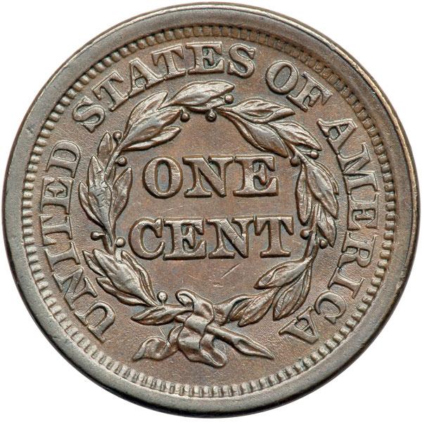 1852 N-12 R1 Repunched 18 EF45. Glossy chocolate and steel brown, the obverse delicately woodgrained. Frosty luster covers the protected areas. A very faint hairline scratch meanders about the field at stars 2-4. MDS, die state b early. The repunching at the 1 and 8 is gone but the obverse die is still uncracked. This is Newcomb's #13 early. DWH #1212.