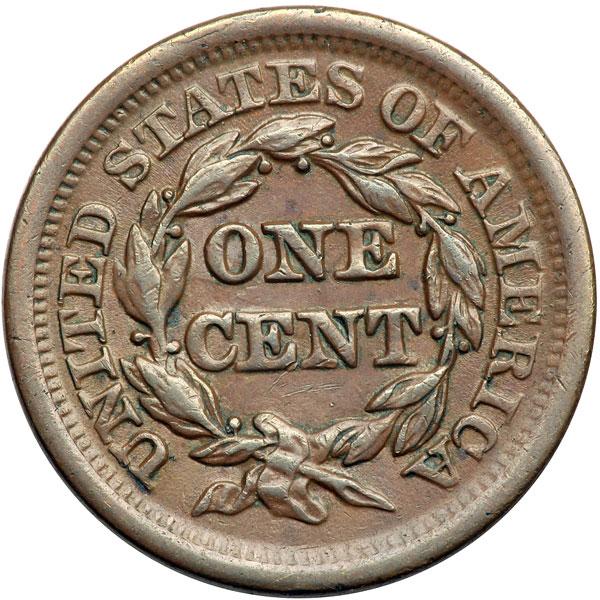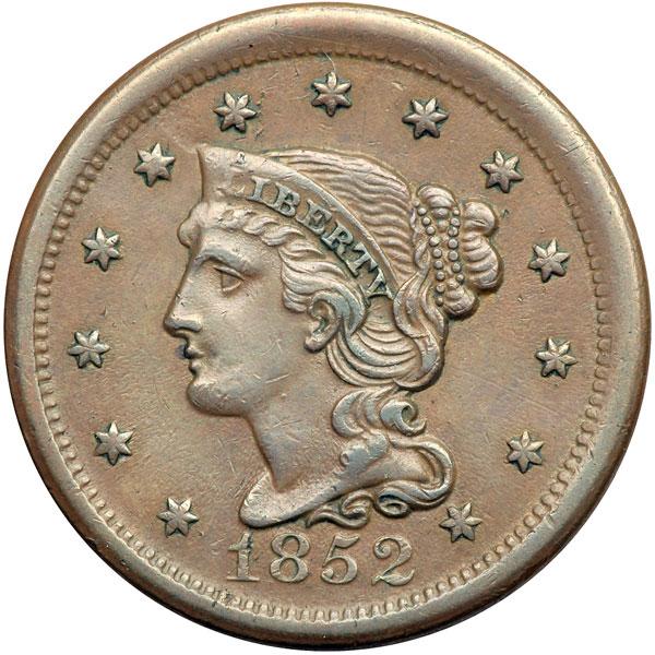 1852 N-15 R3 VF35. Five points sharper with some small contact marks on each side, the strongest ones at the base of EN in CENT. Glossy steel brown and chocolate. LDS, die state c. All the die lines and points on the reverse are gone. DWH #1218.