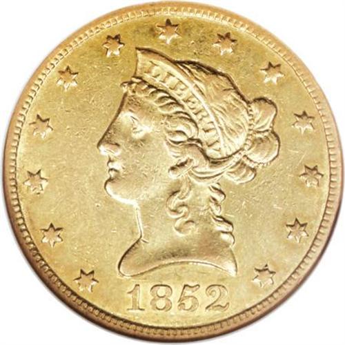 <B>1852-O $10 AU53 NGC.</B></I> The 1852-O, with a mintage of 18,000 pieces, is scarce in About Uncirculated, and virtually unobtainable in Mint State (three pieces have been certified by NGC and PCGS). This yellow-gold AU53 example displays sharp definition and relatively few marks for a piece that saw some circulation.<BR><BR><b>Shipping:</b> Coins & Currency (<a target="_blank" href="http://www.heritageauctions.com/common/shipping.php">view shipping information</a>)
