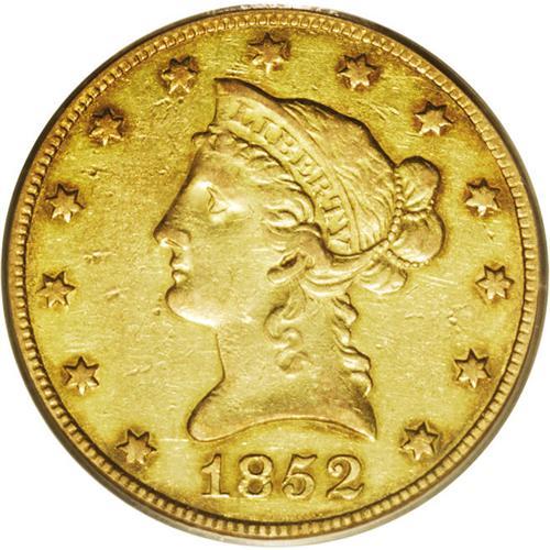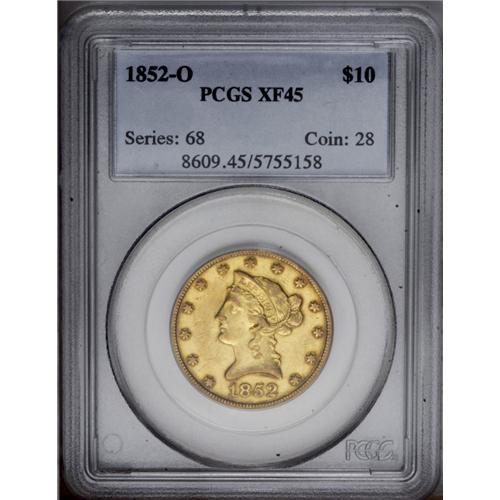 "1852-O $10 XF45 PCGS. The 1852-O, with "