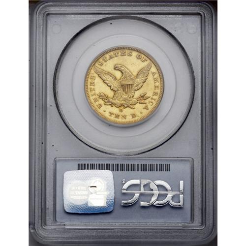 <B>1852-O<$10> XF45 PCGS.</B></I> The 1852-O, with an original mintage of 18,000 pieces, is a difficult date to find in any grade. PCGS and NGC combined have certified around 150 examples, some of which are undoubtedly resubmissions. This is an interestingly colored Choice XF representative with rich green-gold surfaces and crimson-copper highlights around most of the devices. Lightly worn overall with a few moderate abrasions and a pinscratch in the reverse field after the D in UNITED. The design elements are nicely brought up for a New Orleans issue; the stars are not quite as flat as usually seen, and good definition is apparent in the hair curls.