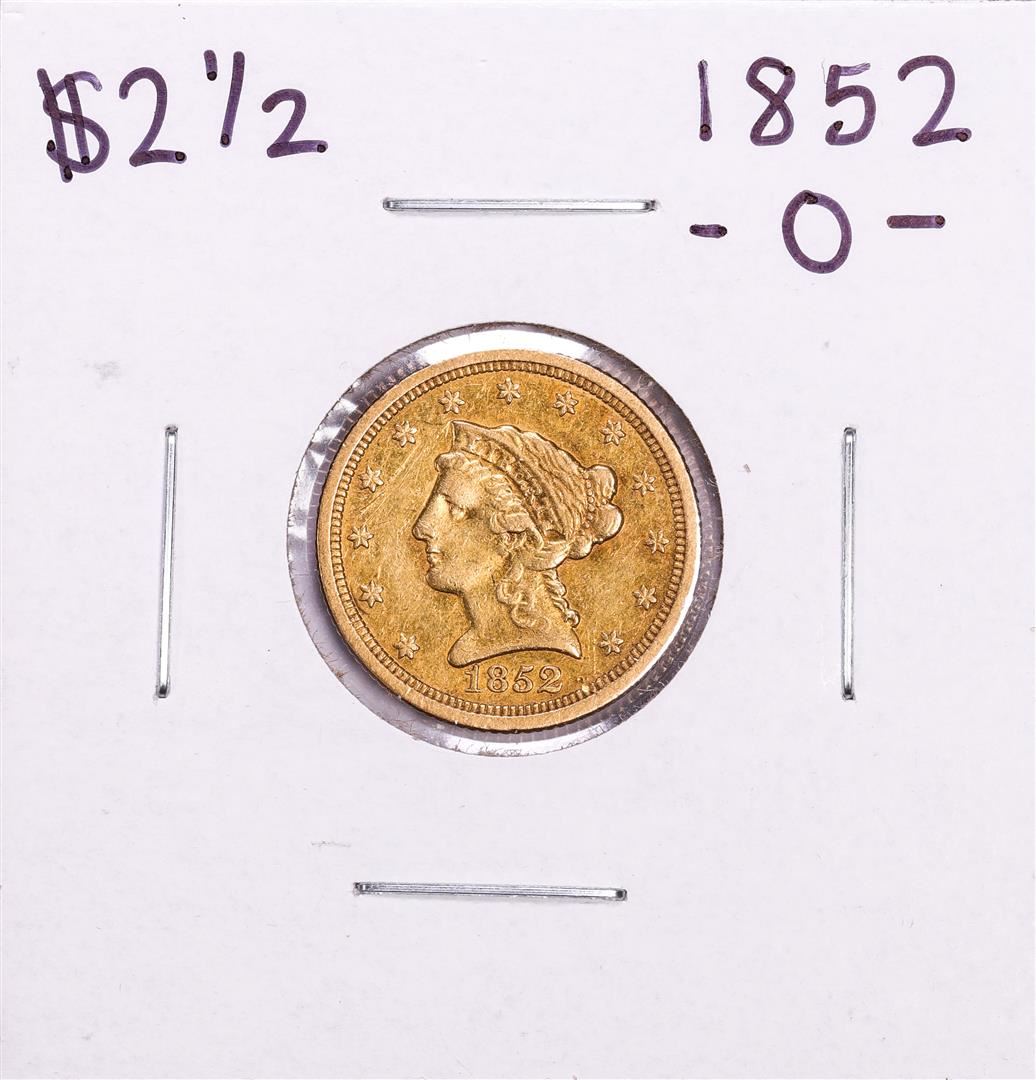 One 1852-O $2 1/2 Liberty Head Quarter Eagle Gold Coin.