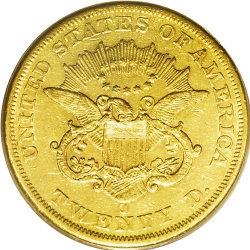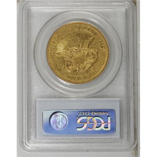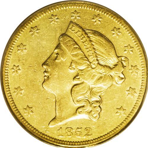 <B>1852-O<$20> AU53 PCGS.</B></I> The 1852-O double eagle is similar to the 1851-O in general availability in circulated grades, and equally rare and elusive in Mint State. This example offers considerable prooflikeness under a light bit of field chatter and minor, grade-consistent abrasions on the attractive, orange-gold surfaces.