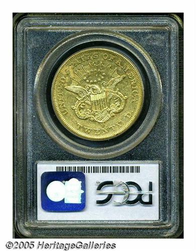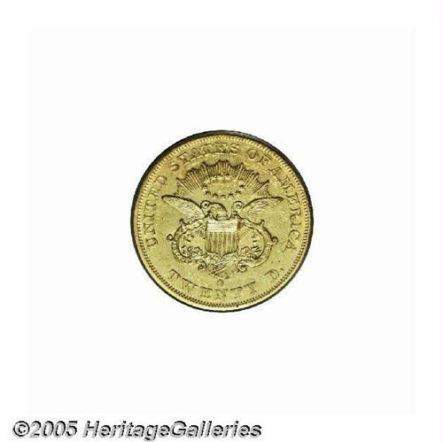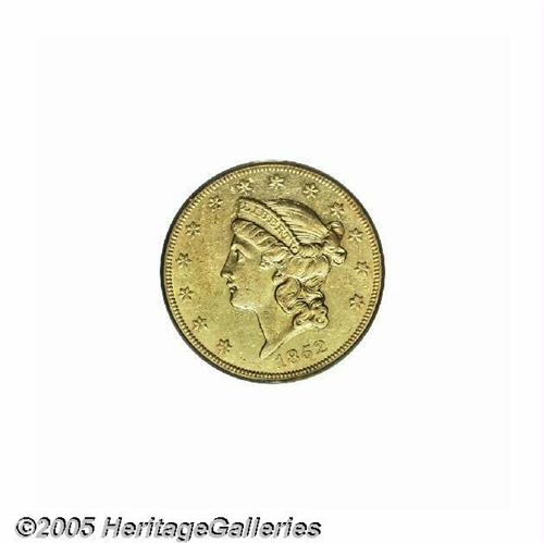 <B>1852-O<$20> AU53 PCGS.</B></I> This is a subtly colored, green-gold example with remnants of a desirable reflective sheen. Both the color and the finish are characteristic of most extant '52-O Double Eagles, but the overall bold strike is well above average. The surfaces are minimally worn with a smattering of abrasions that are typical. The 1852-O is the most readily obtainable of the 1850-1852 O-mint Double Eagles in AU, and it is always in demand among high grade circulated type collectors.